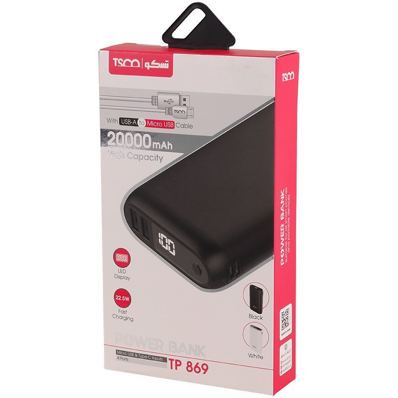 جنس بدنه استفاده شده در پاوربانک تسکو مدل TP 869 از ABS و PC بوده که در برابر ضربات از این محصول مراقبت می‌کند.
