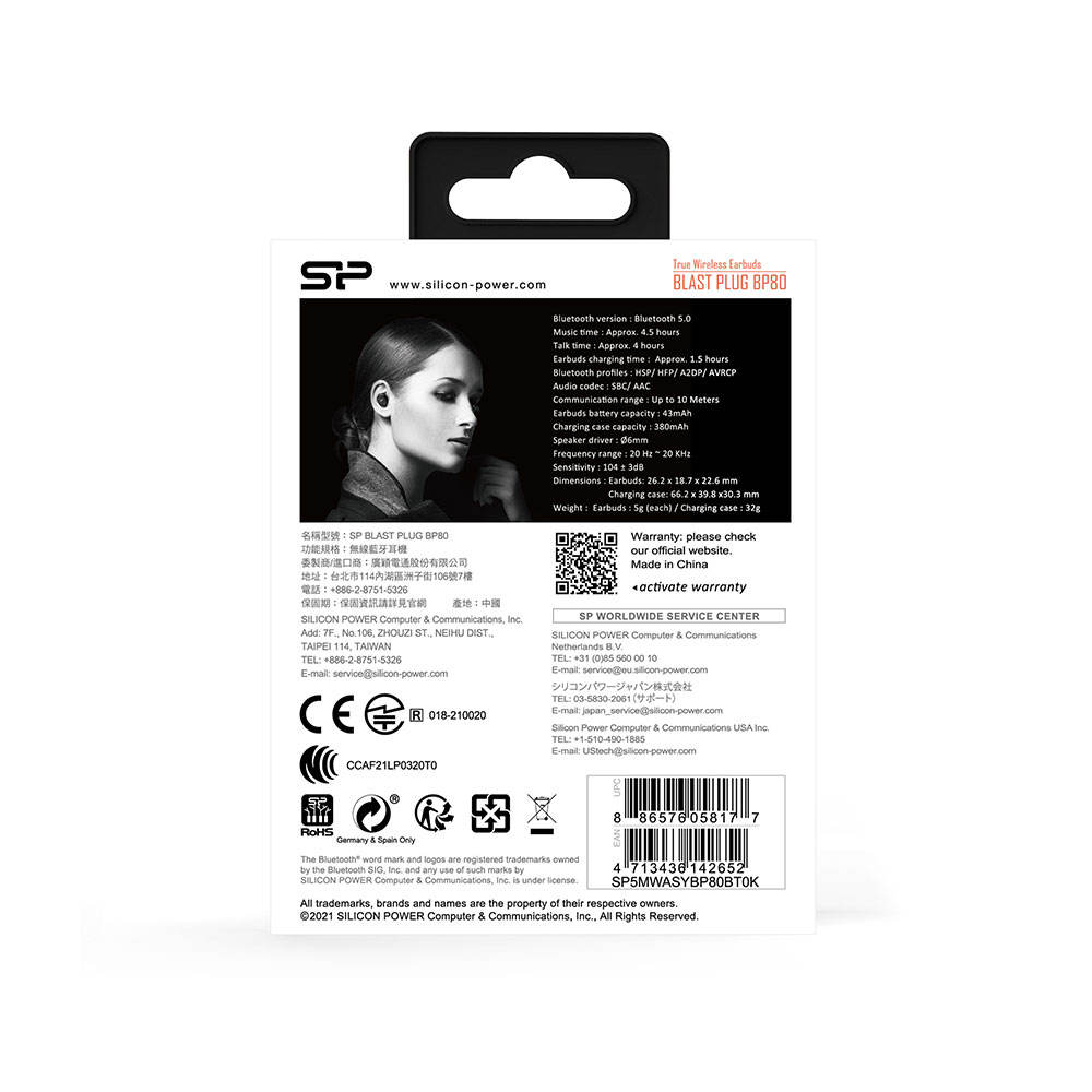 چه بخواهید زیر باران برقصید و چه بخواهید عرق کنید، هدفون BP80 TWS برای این کار ساخته شده است. با رتبه IPX4، این هدفون ها می توانند در برابر پاشیدن از هر جهت مقاومت کنند. به علاوه، کیف شارژ تاشوی جمع و جور وزن کمتری از یک توپ گلف دارد، بنابراین به سختی متوجه همراه بودن آن خواهید شد. همچنین از طریق ورودی Micro-USB خود در عرض 2 ساعت به طور کامل شارژ می شود.