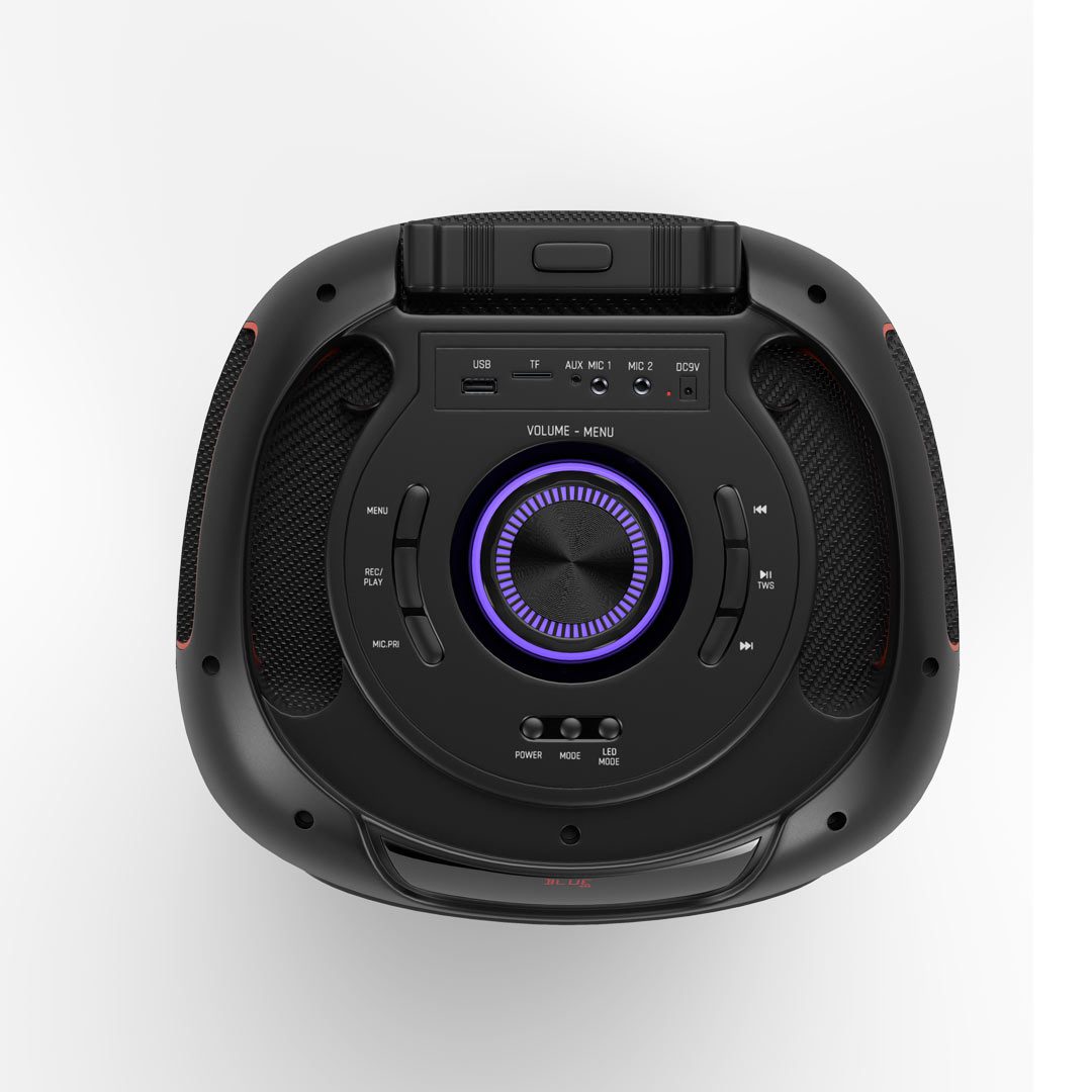 با این اسپیکر میتوانید از انواع مختلف منابع موسیقی نظیر BT/USB/TF/FM/AUX/TWS/Mic PRI/MIC input استفاده کنید و از رادیو FM و دو ورودی میکروفون برای کارائوکه و استفادههای مختلف بهرهمند شوید.