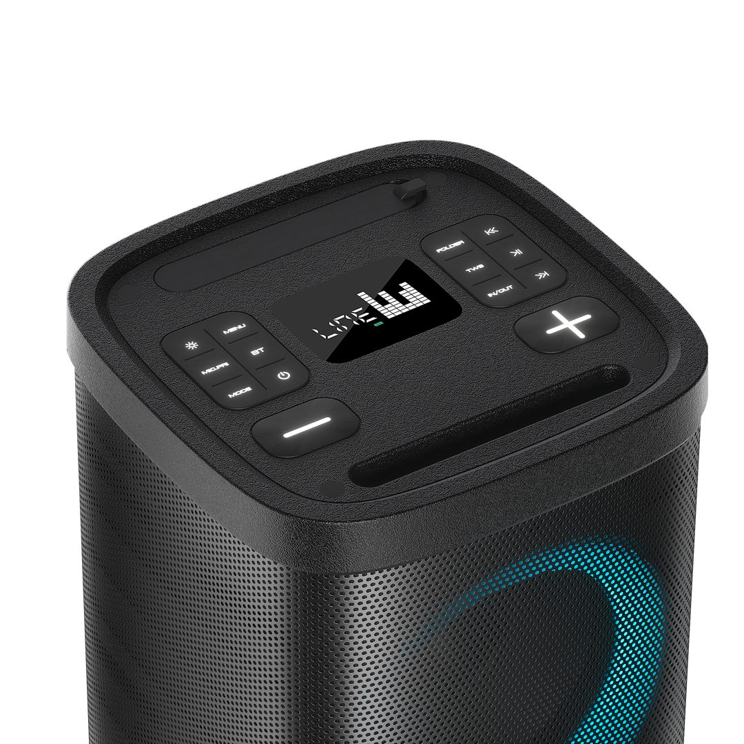 در این بخش میتوانید یک نمایشگر برای نمایش اطلاعات موسیقی، 14 دکمه برای کموزیاد کردن صدا، تغییر بین حالتهای مختلف اتصال دستگاه مثل بلوتوث، TWS و… ، دکمههای کنترل مدیا، دکمه خاموش و روشن و چندین دکمه مختلف دیگر را مشاهده کنید.